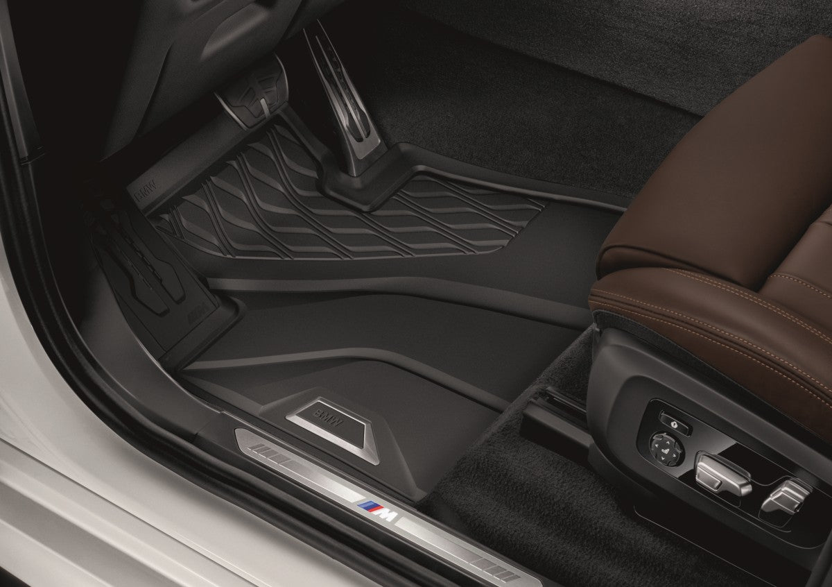 I robusti tappetini quattro stagioni BMW su misura con bordo rialzato e dal gradevole design proteggono il vano piedi posteriore dall'umidità e dalla sporcizia. Realizzati in nero, questi tappetini si abbinano alla perfezione all’allestimento interno e sottolineano così il carattere unico della vettura.