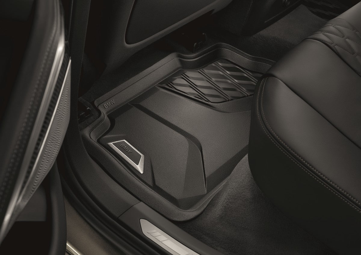 I robusti tappetini quattro stagioni BMW su misura con bordo rialzato e dal gradevole design proteggono il vano piedi posteriore dall'umidità e dalla sporcizia. Realizzati in nero, questi tappetini si abbinano alla perfezione all’allestimento interno e sottolineano così il carattere unico della vettura.