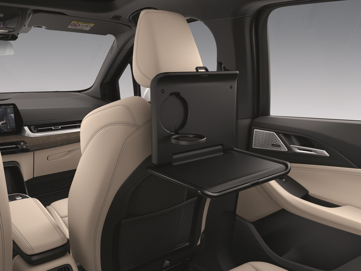 Grazie alla pratica funzione snap-in, può essere montato in pochi secondi, regolato individualmente in altezza e inclinazione e installato sullo schienale per la massima stabilità. Un accessorio ideale per i passeggeri posteriori, sia come superficie di lavoro e appoggio, sia come alloggiamento sicuro per le bevande grazie al pratico portabevande pieghevole. La protezione da sovraccarico integrata protegge il tavolino da carichi eccessivi ed eventuali danni. Come tutti i componenti del sistema Travel & Comfort, il tavolo pieghevole è stato sottoposto a crash test sulle vetture BMW/MINI e soddisfa i requisiti di sicurezza particolarmente elevati di BMW e MINI. Con il suo design elegante in nero opaco, si inserisce perfettamente negli interni di alta qualità del veicolo.