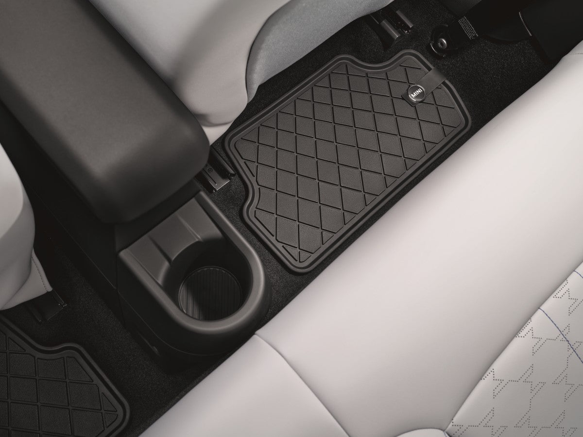 I vantaggi del kit di tappetini quattro stagioni MINI in breve: su misura, robusti e facili da pulire, tenuta sicura tramite elementi in velcro sul lato posteriore, maggiore isolamento acustico dell'abitacolo, estrazione agevole grazie alle cinghiette applicate lateralmente, colore perfettamente abbinabile a tutti gli equipaggiamenti. Fornitura in dotazione: quattro tappetini quattro stagioni.