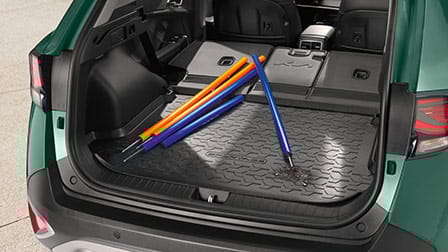 Progettato appositamente per mantenere gli schienali dei sedili posteriori ripiegati in condizioni ottimali quando si trasportano oggetti lunghi e ruvidi potenzialmente dannosi, oltre a impedire che gli oggetti scivolino nello spazio tra i sedili e il bagagliaio. Facile fissaggio con velcro. Realizzato al 90% con fonti di origine biologica.